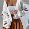 Apporte une touche ludique et tendance à ton vestiaire d’automne et d’hiver avec ce cardigan pour femme de couleur blanc écru. Sa maille épaisse offre un relief doux et chaleureux, tandis que les broderies cerises sur les manches apportent une note graphique et originale. La coupe loose crée un tombé fluide et confortable, idéal pour un look décontracté d’inspiration high street. Porté ouvert, il se superpose facilement sur un top ou un débardeur pour un style à la fois cosy et moderne. Un cardigan au caractère affirmé, parfait pour dynamiser une tenue du quotidien.