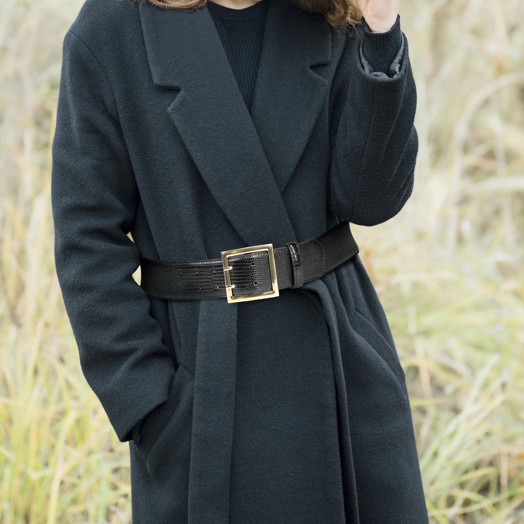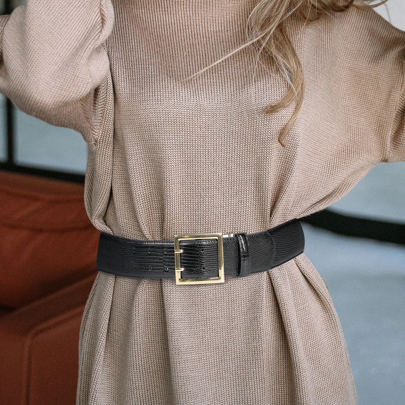 Cette ceinture large noire apporte une touche élégante et affirmée à votre look. Son effet cuir texturé associé à une boucle dorée lui donne un style moderne et raffiné, idéal pour sublimer un jean, structurer une robe ou cintrer la taille avec caractère. Un accessoire indispensable pour créer des tenues chic et tendance.
