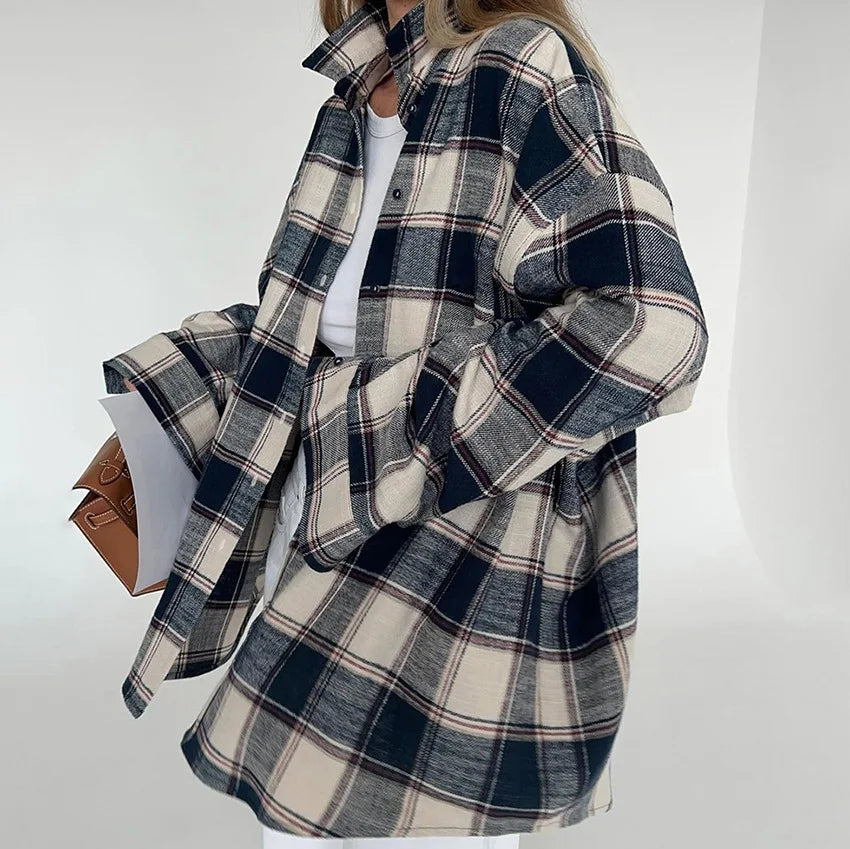 Apporte une vibe douce et quotidienne à tes looks avec cette surchemise à carreaux bleu marine, parfaite pour créer une tenue à la fois décontractée et soignée sans effort.