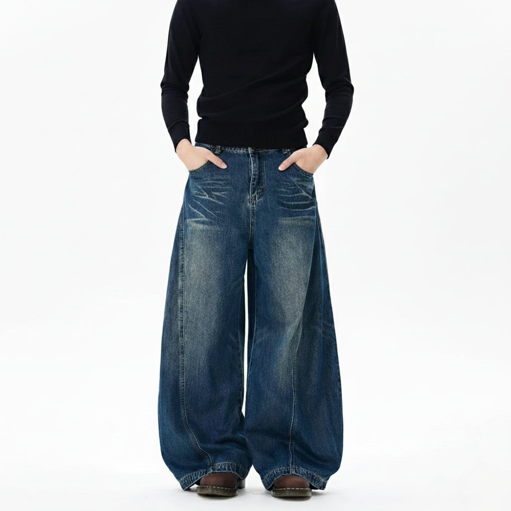 Ce jean baggy bleu délavé impose un style oversize marqué, inspiré du streetwear vintage. Sa coupe ultra large et fluide assure une liberté totale de mouvement, tandis que le denim lavé lui confère un aspect usé authentique et tendance.