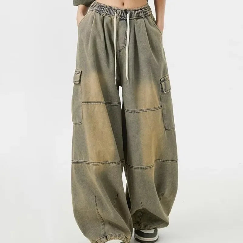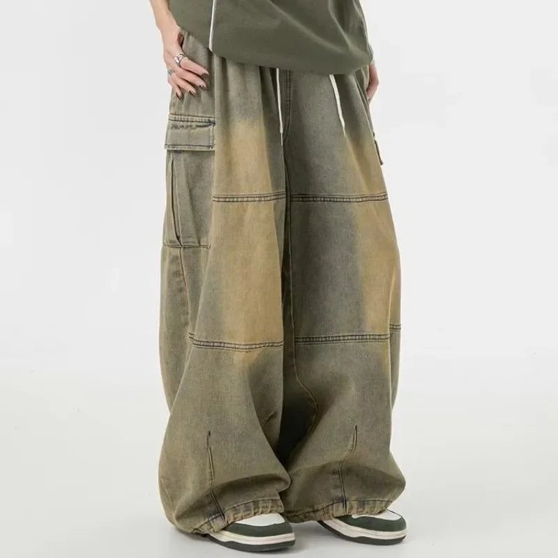Ce jean cargo large s’inspire du style japonais tooling, mêlant confort, originalité et allure streetwear. Sa coupe ultra ample et son effet délavé apportent une touche vintage très tendance. Idéal pour un look décontracté et urbain, il se porte aussi bien avec un t-shirt oversize qu’un hoodie.