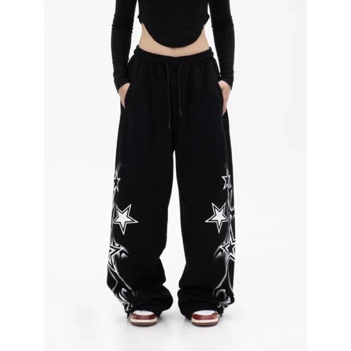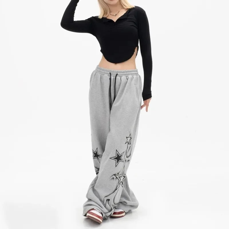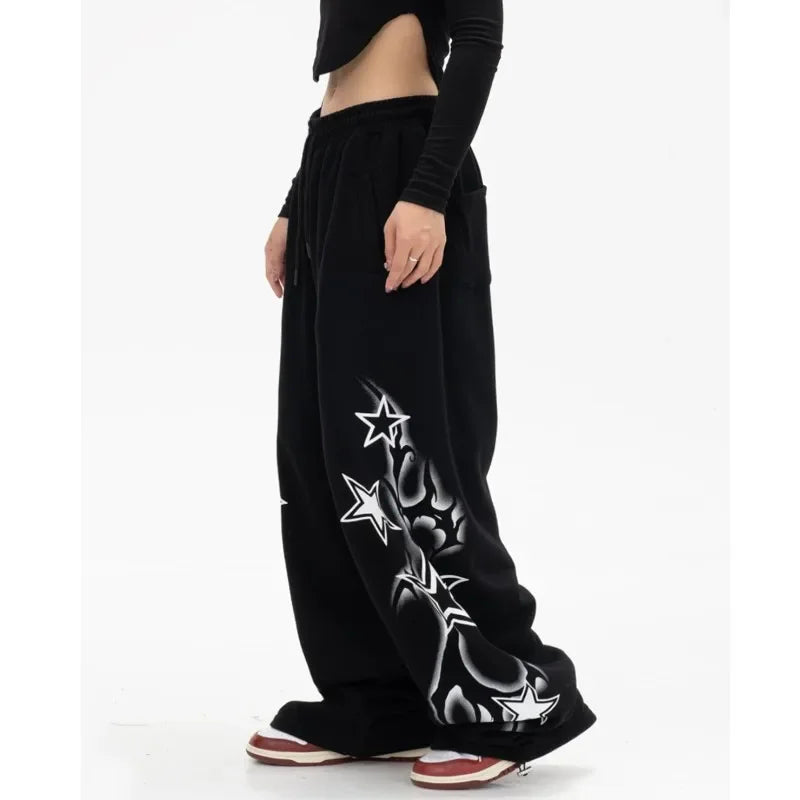 Ce pantalon large apporte une vraie touche streetwear grâce à ses motifs étoiles façon graffiti sur le bas des jambes. Sa coupe ample offre un tombé fluide et ultra confortable, idéal pour créer un look hip-hop, casual ou danse. Avec sa taille élastique ajustable, il se porte facilement au quotidien tout en gardant une allure tendance.