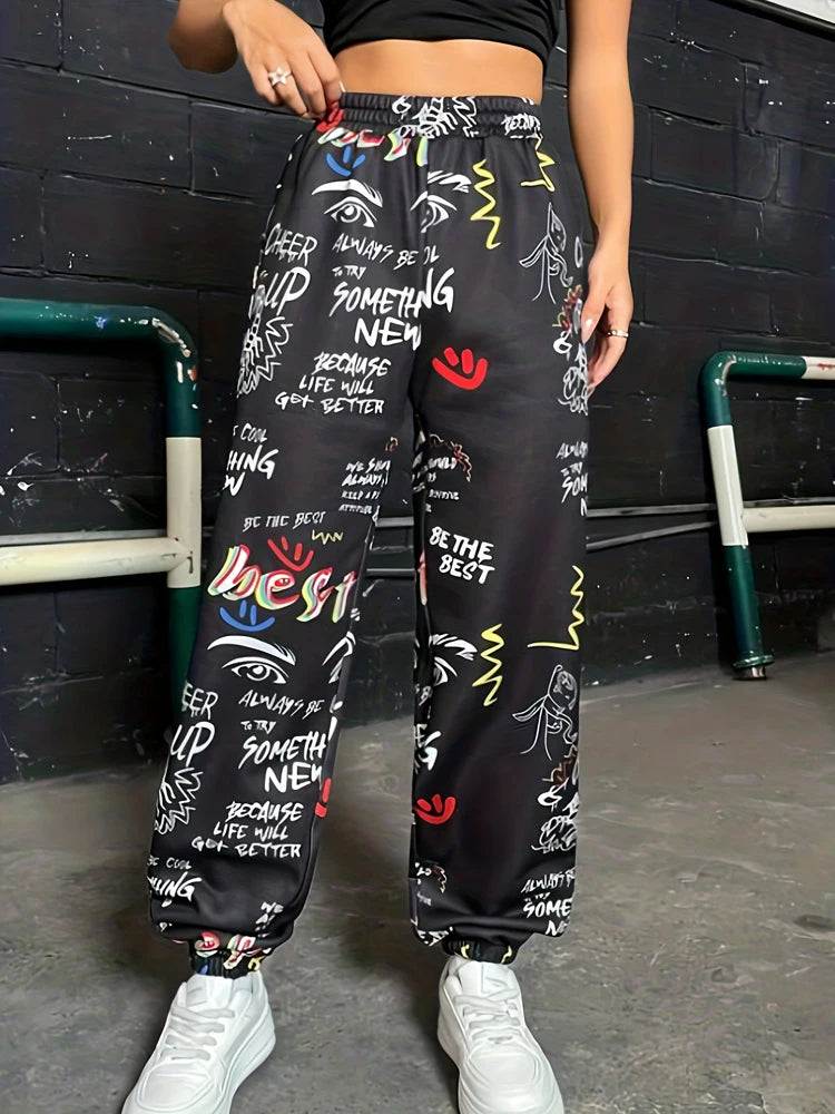 Ce jogging à motifs graphiques apporte une touche audacieuse et créative à ton look. Sa coupe ample et sa taille élastique assurent un porté confortable, idéal pour les sorties, les festivals ou simplement pour afficher un style streetwear assumé. Les illustrations colorées et les messages dessinés donnent une vraie identité à la pièce, parfaite pour celles qui veulent se démarquer.