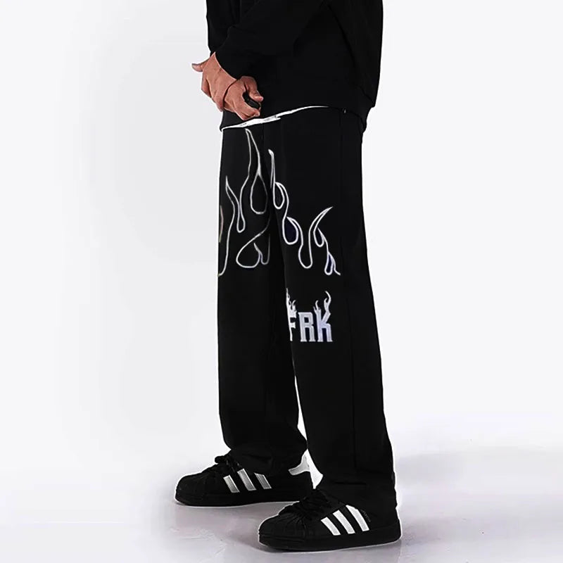 Affirme ton style street avec ce jogging large décoré de flammes blanches pour un look percutant et original. Sa coupe ample assure un tombé fluide et un confort optimal, parfait pour les journées décontractées ou les sorties urbaines. L’imprimé flamme apporte une touche dynamique, tandis que la coupe droite et la taille élastique avec cordon permettent un ajustement simple et pratique. Facile à associer avec un hoodie, un t-shirt oversize ou une veste streetwear.