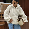 Design Demi-zip, tissu sherpa duveteux, grande poche frontale, manches larges