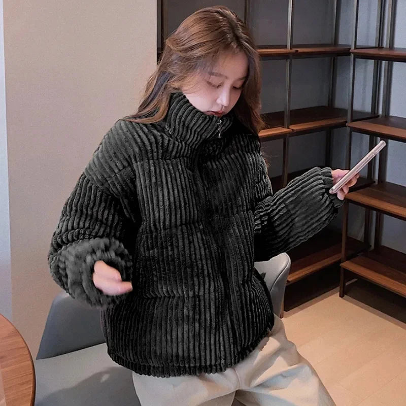 Design Velours côtelé, col montant, fermeture zippée, poches latérales