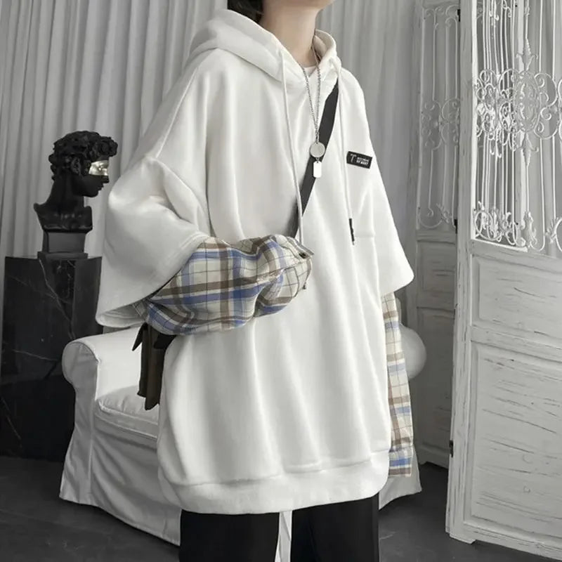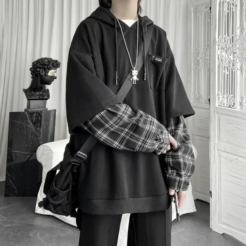 Ce hoodie à manches courtes apporte un style street moderne avec un rendu visuel original. La coupe large permet un confort immédiat, et l’effet manches superposées crée un contraste intéressant avec les carreaux. Facile à porter au quotidien, il se combine très bien avec un pantalon noir ou un cargo.