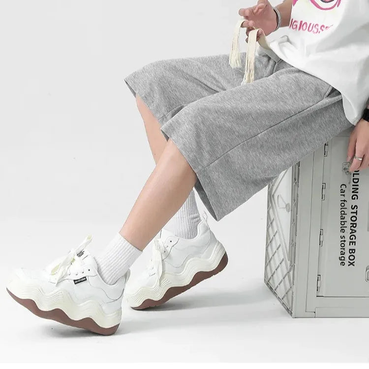 Ce short gris combine confort et style moderne grâce à sa coupe large et ses longs cordons contrastés, signature inspirée du high street asiatique. Son tissu doux et léger offre une sensation agréable au quotidien, idéale pour les journées estivales. La taille élastique permet un ajustement naturel, tandis que son design minimaliste s’associe facilement avec un t-shirt ou un hoodie pour un outfit casual propre et tendance.
