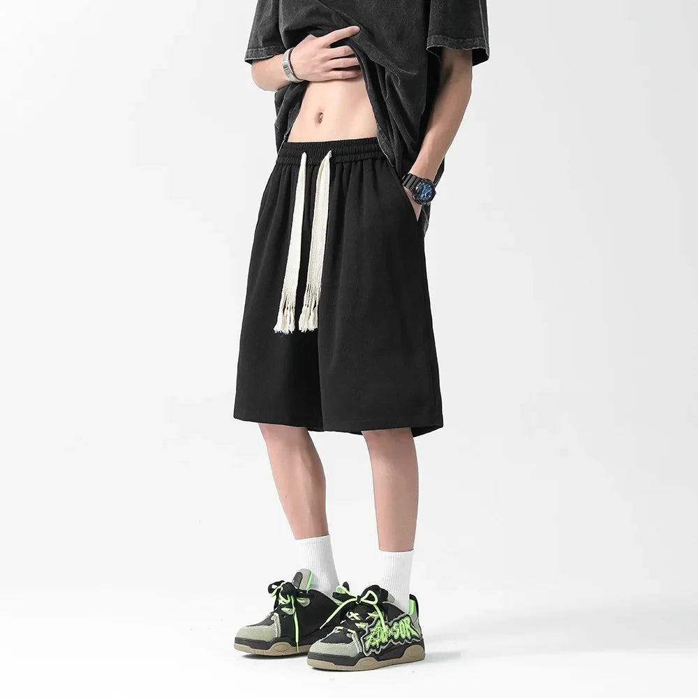 Ce short noir affiche un style marqué grâce à ses longs cordons contrastés, détail signature inspiré du high street asiatique. Sa coupe large et son tissu léger offrent un confort parfait pour l’été, tandis que sa taille élastique assure un ajustement naturel au quotidien. Facile à associer, il se porte aussi bien avec un t-shirt loose qu’avec un hoodie pour un outfit casual moderne et expressif.