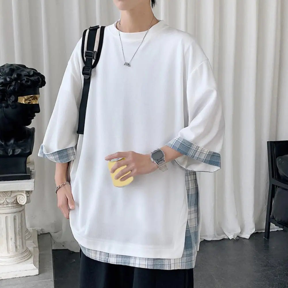 Donne du relief à ton style avec ce T-shirt oversize à effet superposé. Sa coupe large et ses manches trois-quarts apportent une allure street moderne, tandis que les empiècements à carreaux sur les manches et le bas donnent une touche originale sans en faire trop. Conçu en polyester léger, il offre un porté confortable et respirant au quotidien. Facile à associer avec un pantalon ample ou un jean, c’est une pièce qui sort du lot tout en restant simple à porter.