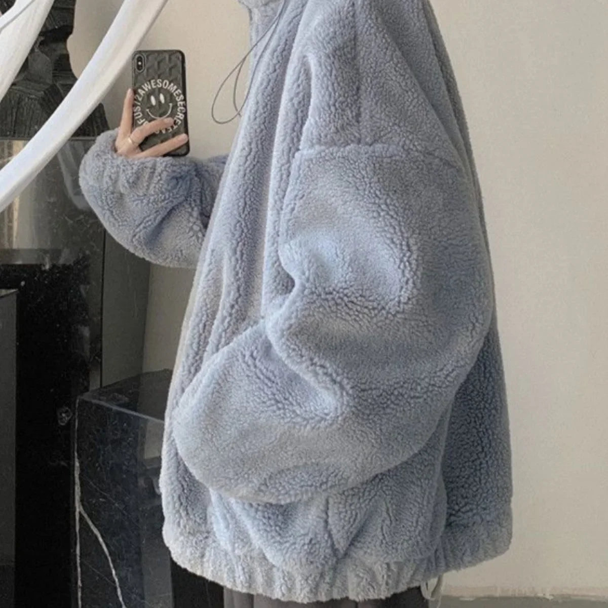 Ajoute une touche chaude et réconfortante à ton look avec cette veste d'hiver à la coupe oversize. Son tissu épais façon laine d’agneau offre une excellente isolation pour l’hiver tout en apportant un style inspiré des tendances actuelles. Le col montant, le zip intégral et la doublure matelassée assurent un confort optimal, même lors des journées les plus froides. Facile à porter avec un pull, un hoodie ou un pantalon ample, cette veste devient rapidement une pièce indispensable pour un outfit cosy et moderne.