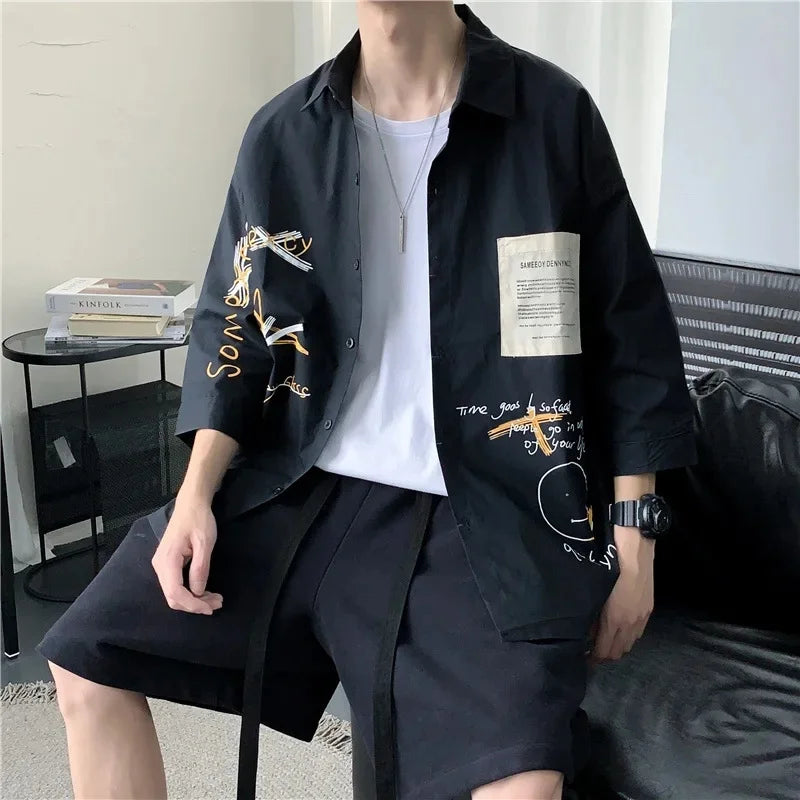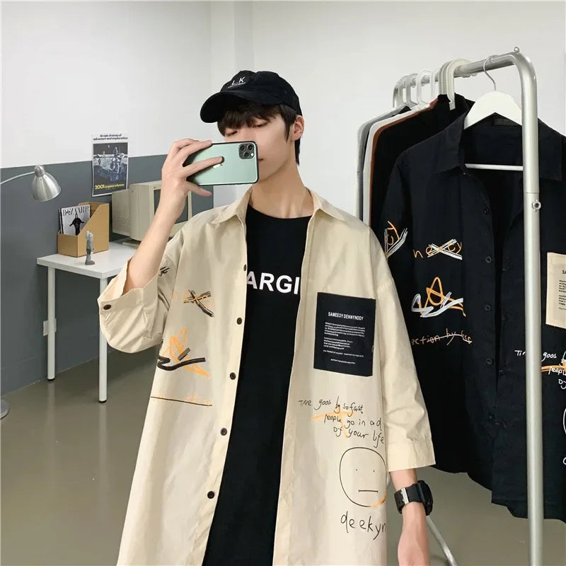 Apporte une touche créative à tes tenues avec cette chemise streetwear inspirée du style japonais. Son imprimé graphique et sa poche contrastée lui donnent un caractère artistique facile à intégrer dans un look décontracté. Légère et confortable, elle est idéale pour l’été et se porte aussi bien ouverte sur un t-shirt que boutonnée pour un rendu plus affirmé.
