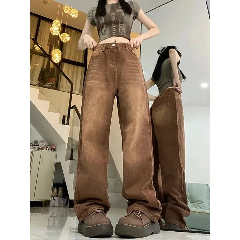 Ce jean marron à coupe droite allie allure vintage et confort moderne. Sa taille haute met la silhouette en valeur tandis que sa coupe large apporte une touche décontractée et tendance. Parfait pour un look du quotidien ou pour ajouter une note rétro à ta tenue.