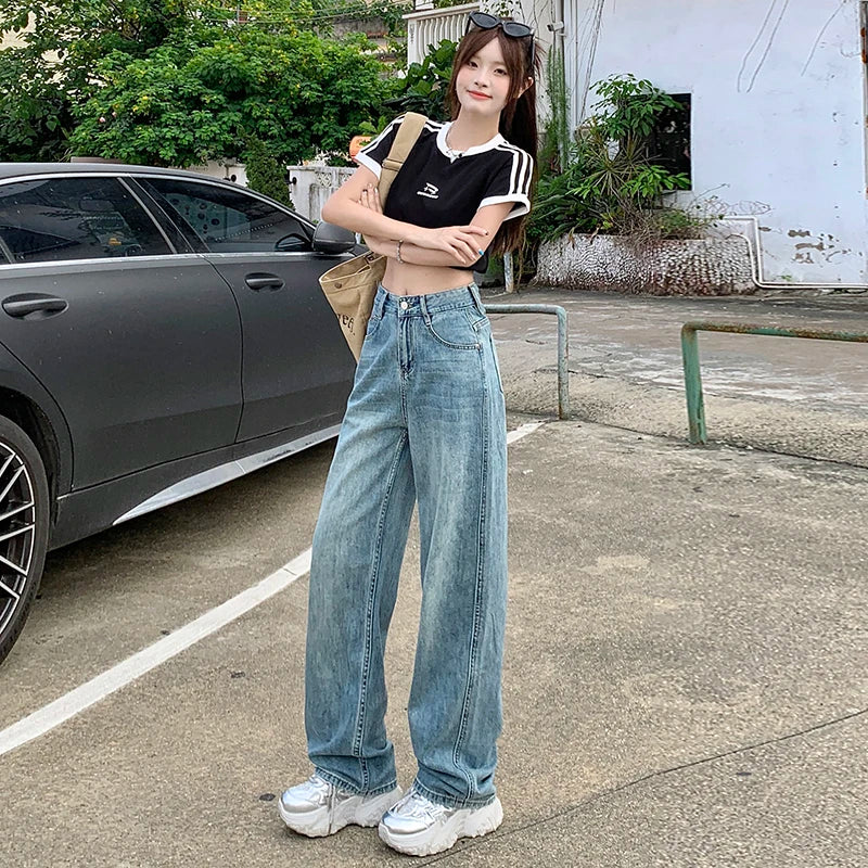 Ce jean bleu clair à taille haute incarne le parfait équilibre entre confort et style. Sa coupe large et fluide met la silhouette en valeur tout en offrant une grande liberté de mouvement. Idéal pour un look streetwear ou casual, il se porte facilement avec un crop top, un t-shirt ou un sweat oversize.