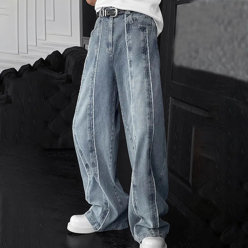 Ce jean baggy à coutures doubles mise sur un design original avec des bandes apparentes qui allongent visuellement la silhouette. Son denim mi-épais et légèrement extensible assure confort et maintien, idéal pour un usage quotidien.