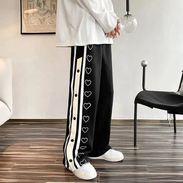Ce pantalon black & white avec motifs cœur sur les côtés est une pièce high street affirmée qui donne du style instantanément. Sa coupe large offre un tombé fluide très agréable à porter, et la taille élastique permet un ajustement naturel au quotidien. Les boutons latéraux ajoutent un détail visuel contrasté qui renforce l’esprit street casual. Parfait avec un t-shirt blanc, un crewneck noir ou une veste denim pour un outfit urbain actuel.