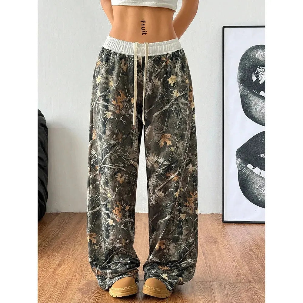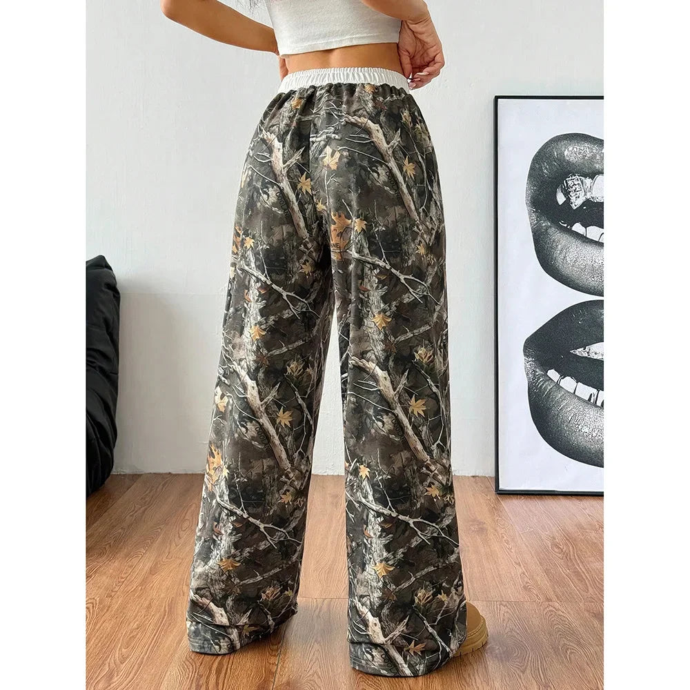 Pantalon femme fleuri inspiration outdoor avec taille élastique et cordon. Coupe large très confortable avec longueur au sol pour un tombé street casual. Léger mais visuellement marquant grâce à l’imprimé forestier automnal.
