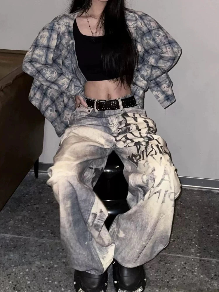 Ce jean large effet vintage apporte une vibe streetwear brute et underground. Le délavage irrégulier et les impressions typées street art donnent un rendu visuel fort. Le volume ample offre un tombé fluide confortable, tout en gardant une identité très marquée.