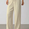 Ce pantalon large à fines rayures verticales offre un rendu léger, propre et estival. La coupe ample laisse une belle fluidité dans le mouvement, parfaite avec sandales et débardeurs minimalistes. Les rayures verticales allongent visuellement la silhouette et donnent un style casual moderne. La taille haute ajustable par cordon assure un confort de port au quotidien durant la belle saison.