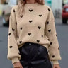 Ce sweat en maille pour femme apporte une touche rétro et chaleureuse grâce à son motif de petits cœurs répartis avec subtilité. Sa maille douce et épaisse le rend particulièrement agréable à porter lors des journées fraîches d’automne et d’hiver. La coupe ample crée une silhouette décontractée tout en restant féminine, tandis que le col rond et les manches longues assurent un confort durable.